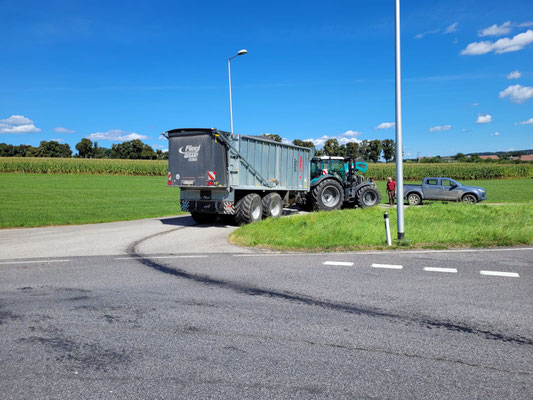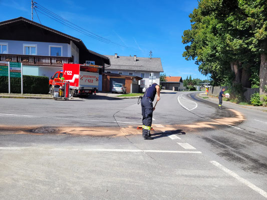 Ein technischer Defekt der Dieselleitung bei einem Traktor sorgte für eine rund 800 Meter lange Spur, die mittels Ölbindemittel und Bioversal gebunden wurde.