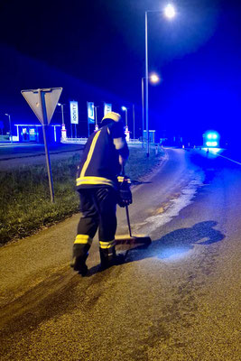 Die Einsatzkräfte banden das ausgelaufene Öl und reinigten die betroffene Straße, um eine Gefährdung für andere Verkehrsteilnehmer zu verhindern. Nach rund 40 Minuten war der Einsatz erfolgreich abgeschlossen, und die Mannschaft konnte wieder ins Feuerwehrhaus einrücken.
